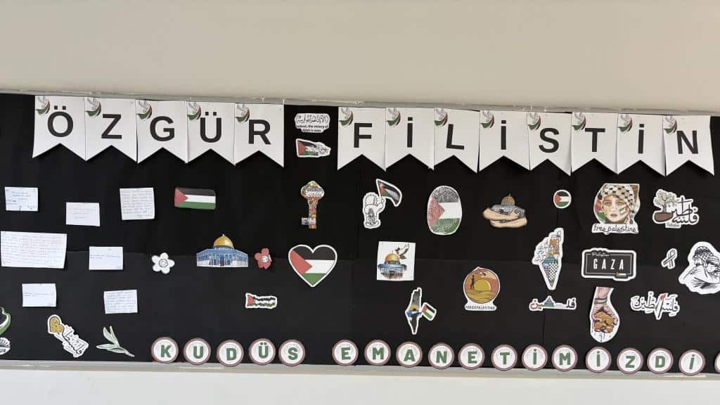 Okulumuz öğrencileri, Türk Dili ve Edebiyatı Öğretmeni Şeyma Kurdoğlu ile Meslek Dersleri Öğretmeni Zekiye Erdem Bayramoğlu koordinatörlüğünde ''Özgür Filistin ve Doğu Türkistan'' temalı panoyla vicdanlara dokunan anlamlı bir çalışmaya imza attı.Renklerin, sözlerin ve sembollerin birleştiği bu panolar; zulme karşı direnişi, umudu ve özgürlük arayışını yürekten dile getiriyor.Öğrencilerimiz, bu anlamlı çalışmayla dünyanın neresinde olursa olsun haksızlığa sessiz kalmamak gerektiğini bir kez daha hatırlattılar.Müslüman kardeşlerimizin yaşadığı zulme karşı duyulan derin üzüntü, dayanışma ve dua dilekleri de panoda yer aldı.Saygıdeğer öğretmenlerimize ve sevgili öğrencilerimize emeklerinden dolayı teşekkür ederiz.